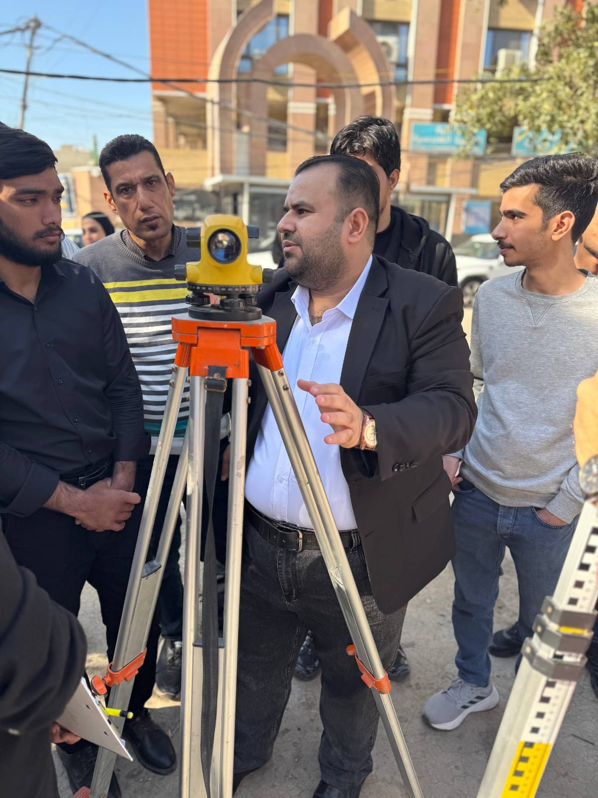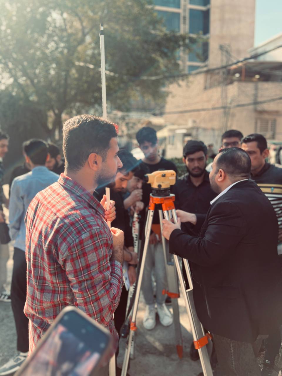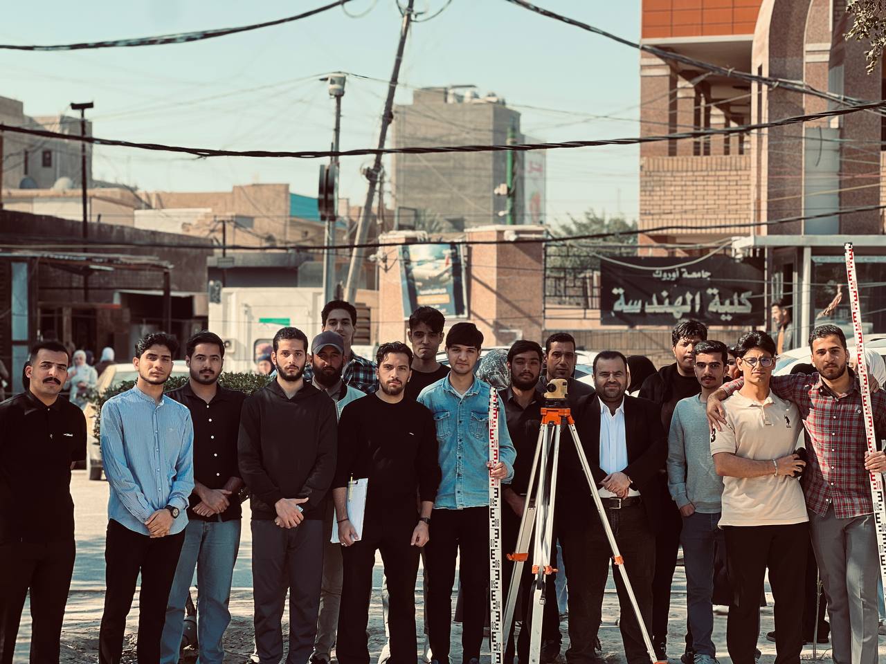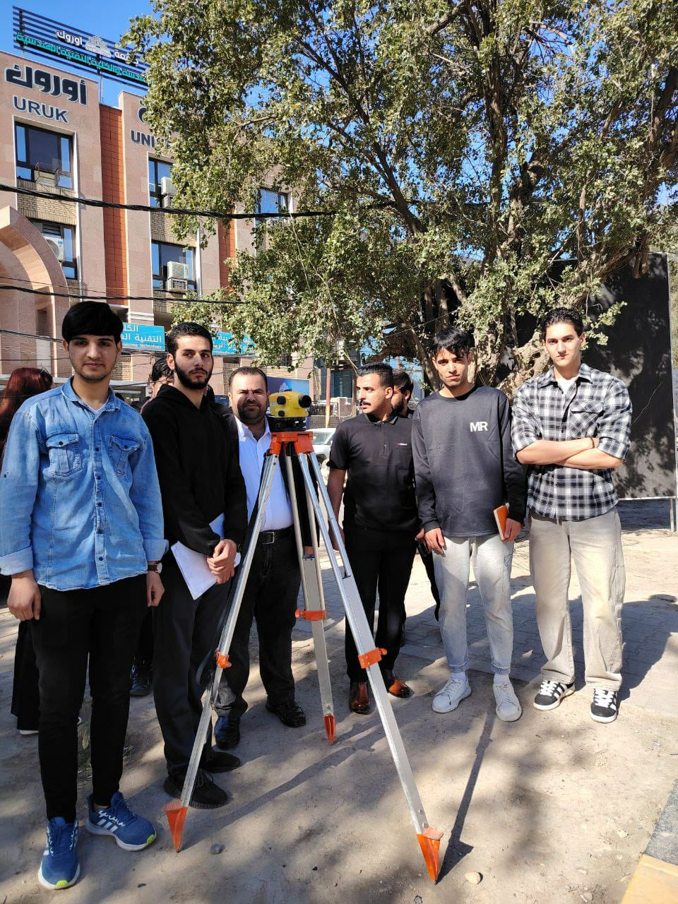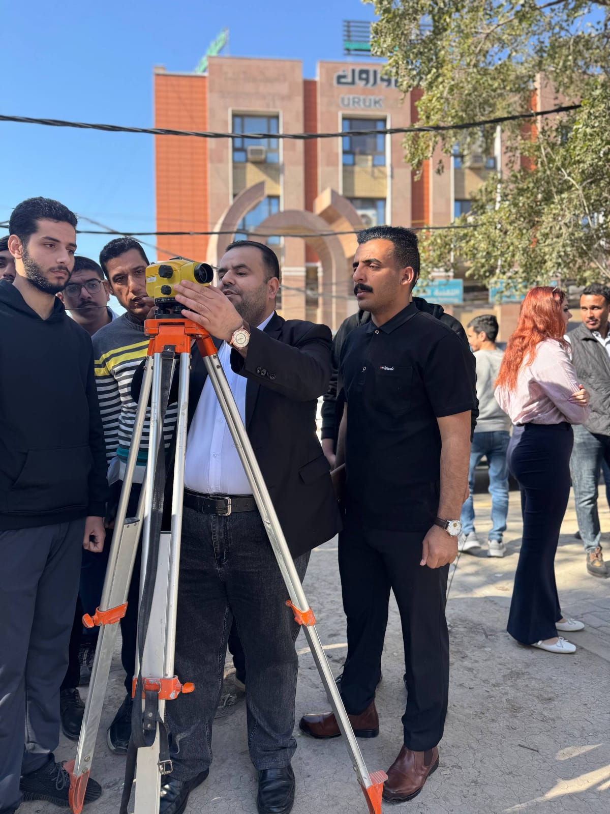 جانب من الممارسات التطبيقية لمادة المساحة الهندسية لطلبة قسم الهندسة المدنية المرحلة الثانية لكلية الهندسة في جامعة اوروك اليوم السبت المصادف 21/2/2026