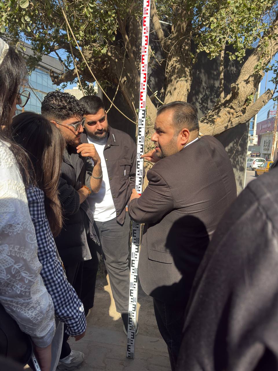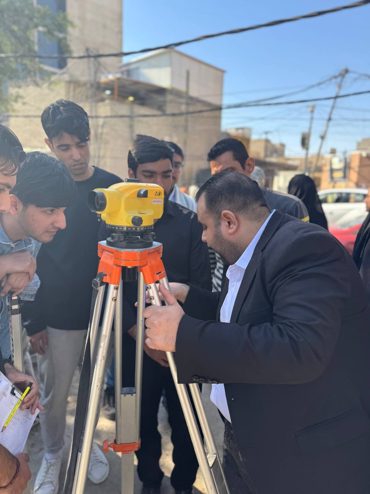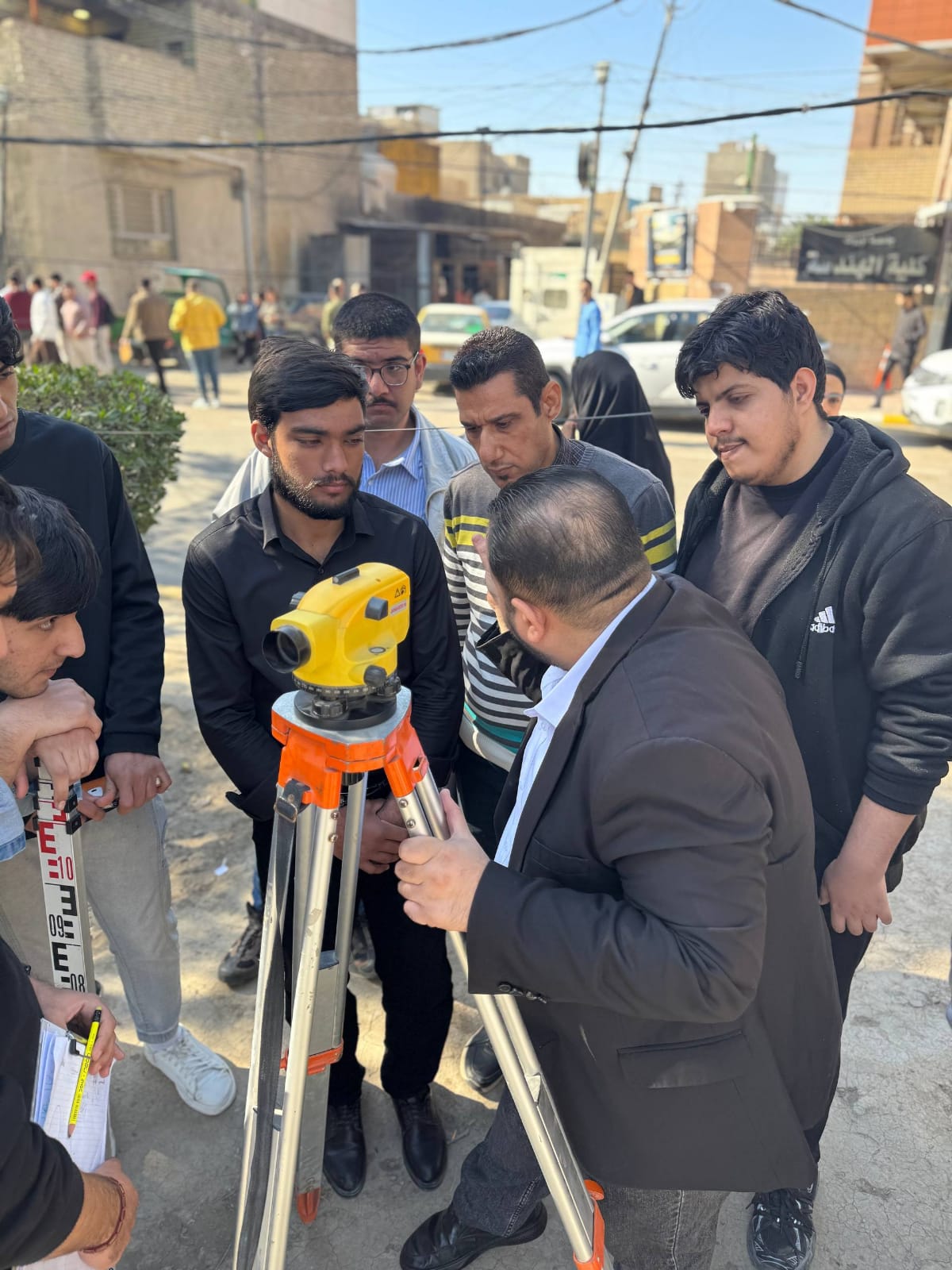 جانب من الممارسات التطبيقية لمادة المساحة الهندسية لطلبة قسم الهندسة المدنية المرحلة الثانية لكلية الهندسة في جامعة اوروك اليوم السبت المصادف 21/2/2026